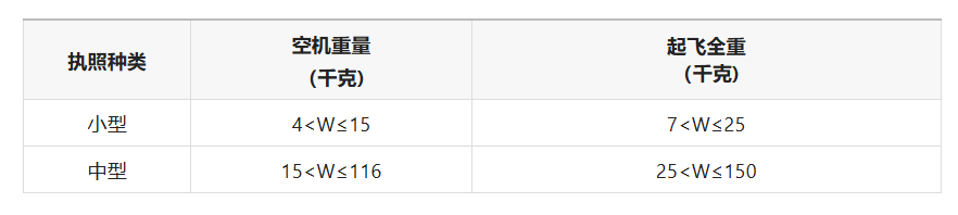 根据《民用无人驾驶航空器操控员管理规定》AC-61-FS-020R3 要求,小型和中型类所能操控的无人机重量范围说明如下: