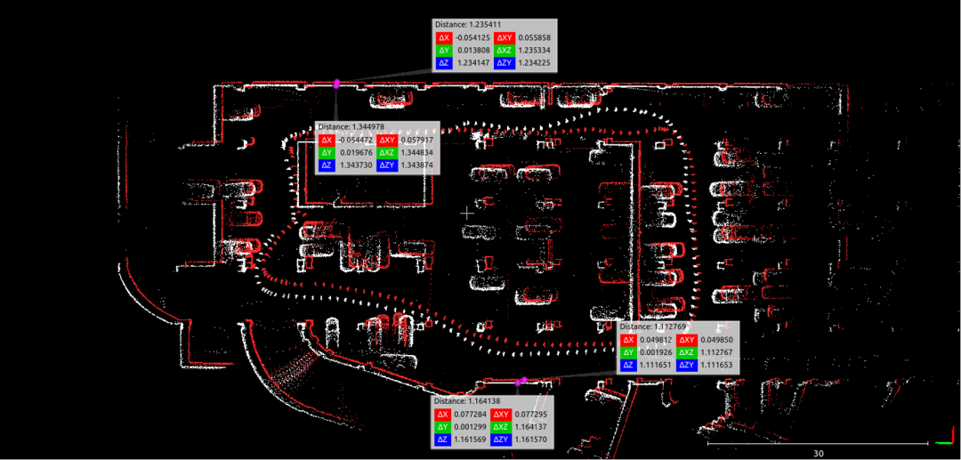 建筑点云建图(白色为其他同类产品,红色为LiDAR 722)