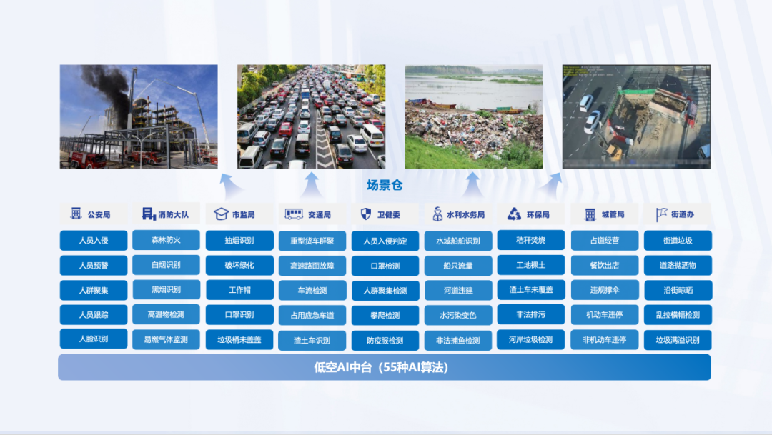 基于这一项目,普宙科技打造了覆盖全业务场景的低空 AI 中台,支持提供更大规模无人机相关数据并发处理能力,提供完备的数据管理、模型训练、模型管理能力。建设多类业务场景算法,深挖无人机感知数据价值,打造具有无人机应用特色的AI中台,进一步提升城市智能感知预警能力。通过共建、共享、共用的模式,实现低空基础设施共建,一航线多任务、一机多数据,一数据多流向,多点数据分类分流。