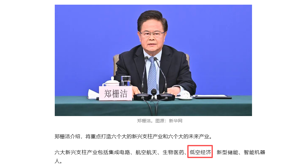 在2026年政府工作报告中,低空经济不仅被连续第三年写入,更首次被明确列为国家“新兴支柱产业”,实现了从“新增长引擎”“新兴产业”到“新兴支柱产业”的战略地位三级跃升。