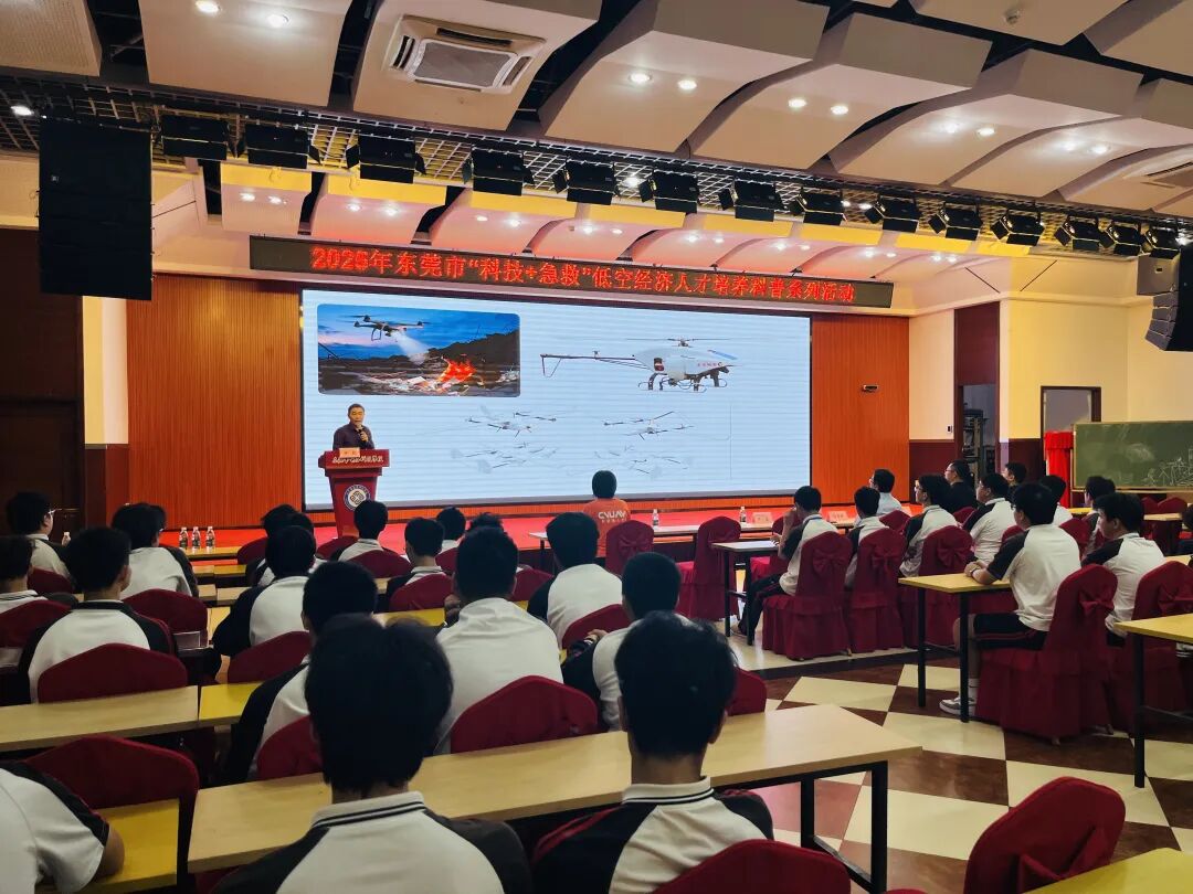 活动以专题讲座为开篇,两大领域权威专家联袂开讲,系统解码低空经济与无人机应急救援的核心内涵,为在场师生带来兼具专业深度与科普温度的知识分享。东莞中学横沥学校高级教师肖春琳聚焦无人机应急救援主题展开深度分享,围绕无人机在应急场景中的独特优势、关键技术支撑、实战应用场景进行系统阐释,并结合真实救援案例,直观展现无人机在自然灾害处置、城市应急保障、生命搜救等场景中的关键作用,生动诠释科技赋能应急救援的高效性与便捷性。讲座现场,师生们全神贯注、积极互动,浓厚的求知氛围充盈全场,充分彰显青少年对前沿科技与应急知识的热切追求。