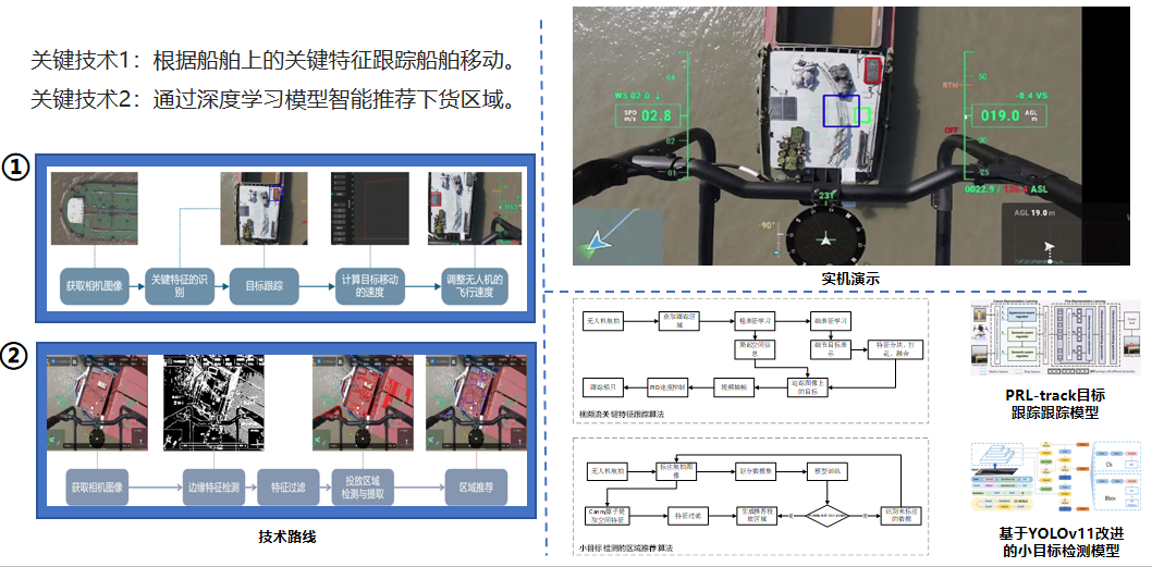 传统货船靠岸补给,单次耗油约125公斤、成本700-1000 元,需3—4人协作,耗时耗力。驿航以机载算力和智能算法,可实现无人机动态识别并跟随行驶中的船只,完成航行过程中的物资配送卸货,飞手仅参与上货、卸货及目标标注确认等环节,飞行过程的目标跟随、自动化控制由系统自主完成,单次配送成本降低至少70%,1人即可完成。