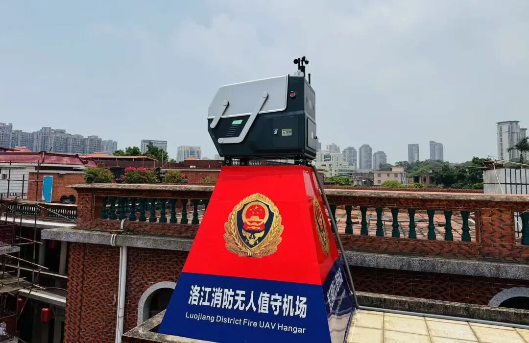 在福建省泉州市洛江区,普宙科技助力区消防求援大队,共部署 9 台无人值守全自动机库,具备自动起降、 自主充换电、智慧巡查等功能,有效提升了工作效率。