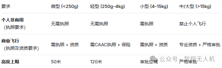 轻型/微型非商用:无需CAAC执照,直接绑定本人信息