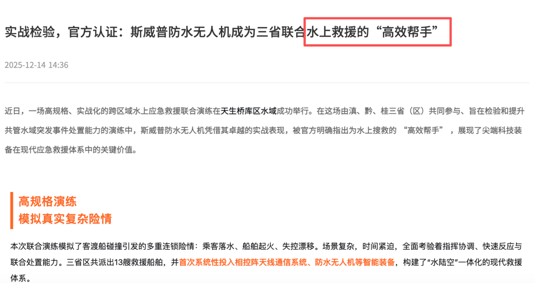 防水无人机也是这样。两台摆在一起,都写着“防水”。但一台只能防雨,另一台能防海、防盐雾、防落水、防乱流。