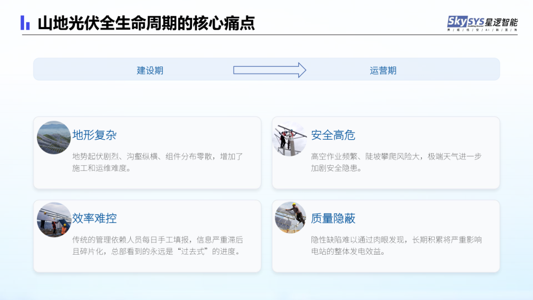 3月30日至31日,由华北电力大学技术转移转化中心组织的系列成果交流活动先后在北京京能清洁能源电力股份有限公司、大唐国际发电股份有限公司和中国节能环保集团有限公司举行。星逻智能技术总监、全国劳模肖素枝博士与高级产品经理郭兴旺应邀参加,并在三场交流中重点分享了星逻智能在山地光伏电站智能运维领域的整体解决方案,获得与会各方的高度评价。