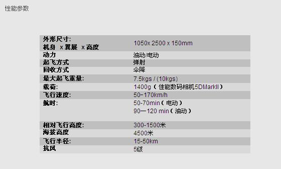 该系统可以装入一辆捷达车当中拉走;也可以两架飞机,一个弹射器装入一辆北斗星小车带走,同时还能乘坐两名作业人员;这款飞机同时也是唯一一款从起飞到降落能够完全自主控制,无需人工干预,无需遥控飞机操作手的测绘无人机。目前航测客户使用该机油动版在四川高海拔地区完成2千平方公里1:2000的航测任务,完成海拔3.8km起飞,4.4千米作业的飞行任务。在山西大同,T10完成了A点起飞,沿山区电力线路起伏飞行到30km之外的B点降落的巡线飞行;该系统尤其适用于复杂地形,或者在城市飞行中可能会造成危险的情况下的作业飞行。我们的系统易用性超过国内任何一家公司的航拍系统,可以完全取消专业飞控手;