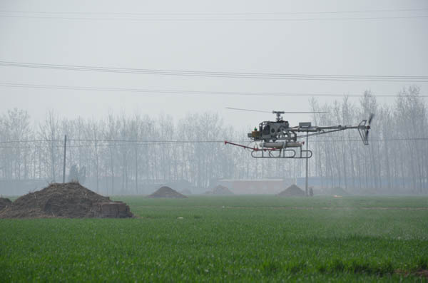 二、效率高、雾化程度高:喷洒均匀,该机借助直升机飞行时产生的向下的强大气流将农药喷洒到庄稼的各个部位,大大提高了农药的利用率。