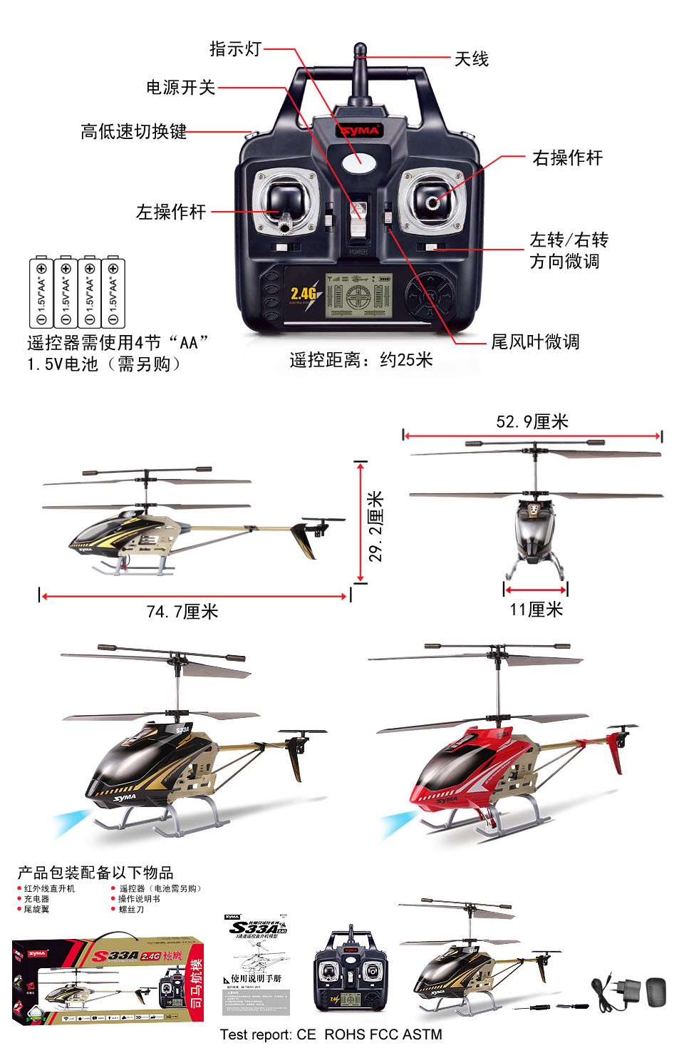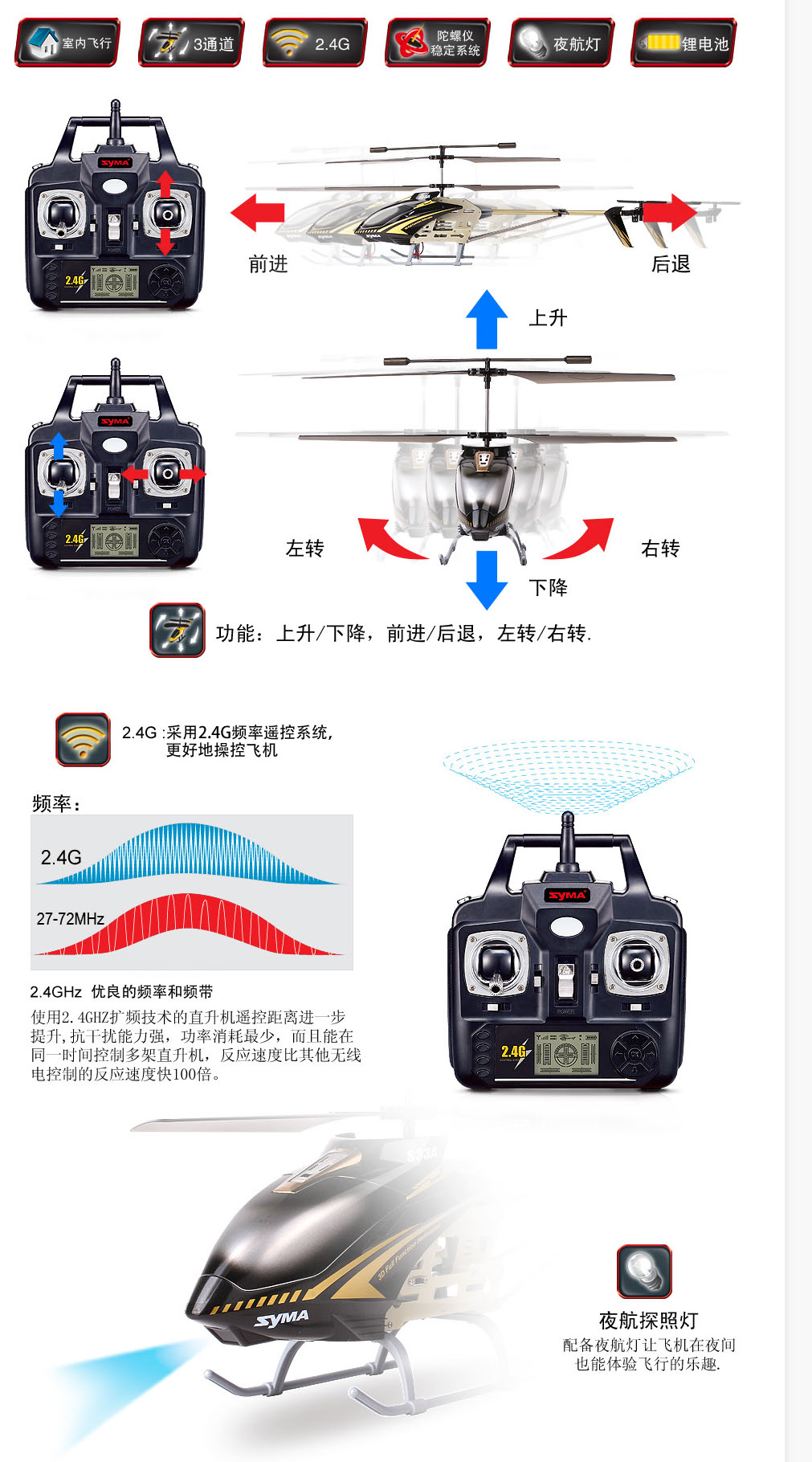 SYMA 3CH R/C helicopter with GYRO 3通道红外线遥控直升机