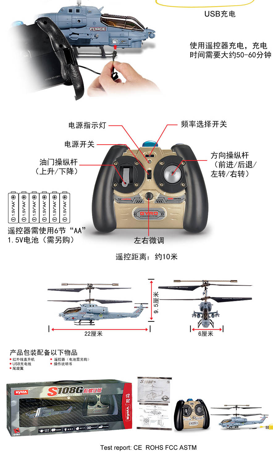 SYMA 3通道陀螺仪遥控直升飞机