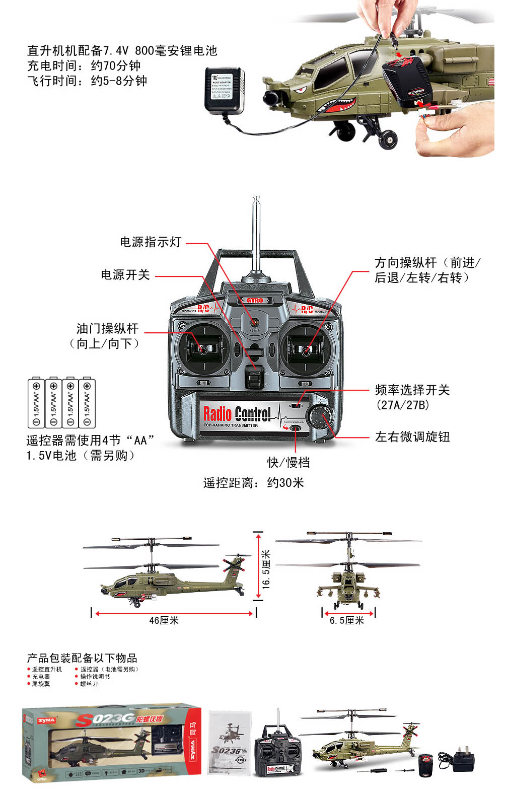 SYMA 3CH R/C helicopter with GYRO 3通道红外线遥控直升机