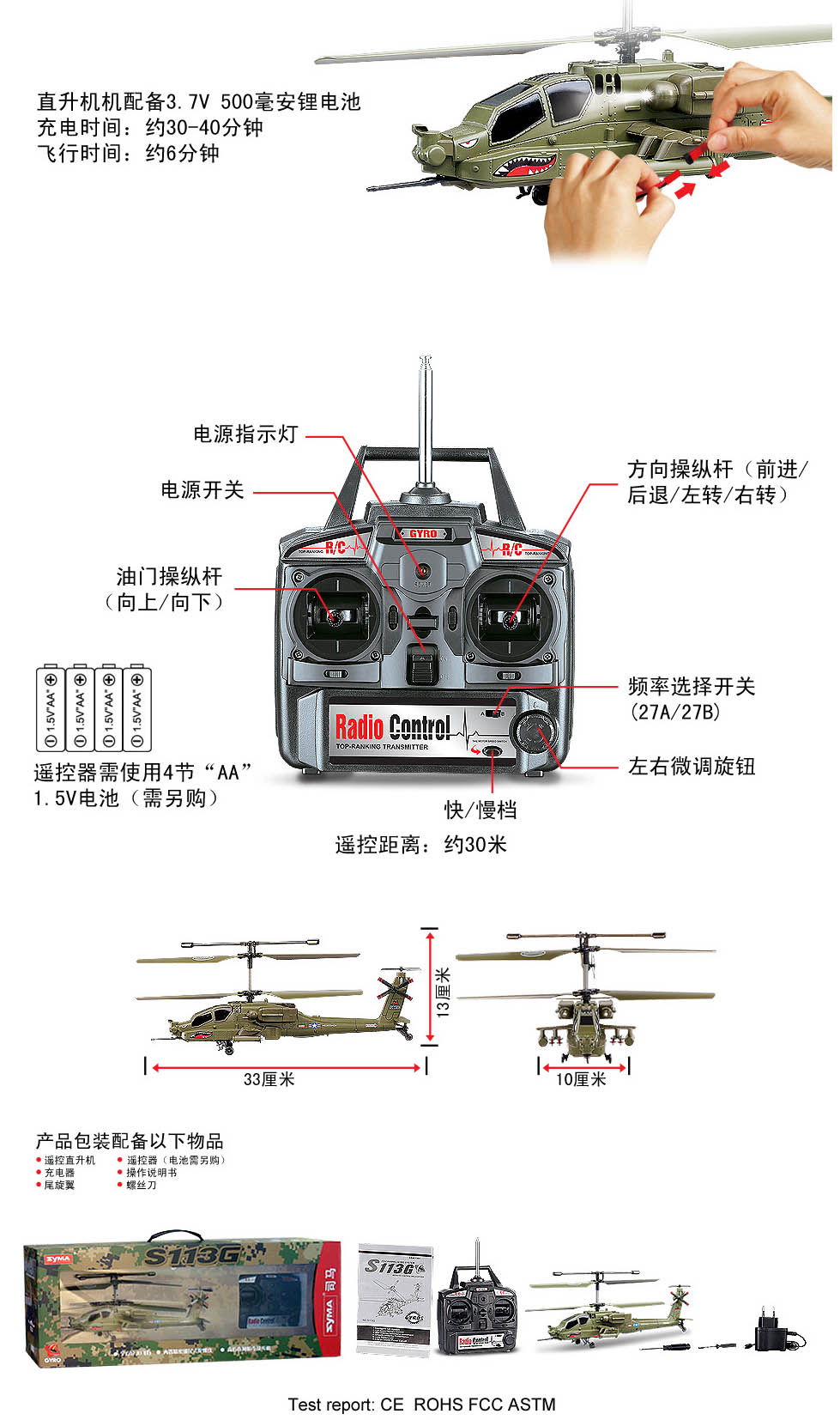 SYMA 3通道陀螺仪遥控直升飞机