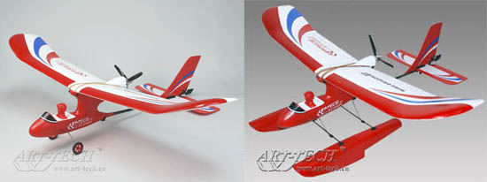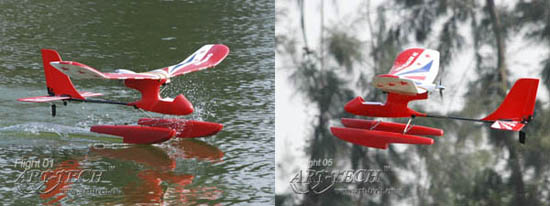 艾特自行研制的首款配无刷电机、三叶螺旋桨、三折机翼、浮筒(选配)的海空两栖机种!