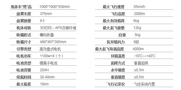 可执行任务:反恐防暴、公安巡检、消防救助、交通巡查、灾难救援、电力巡检等。
