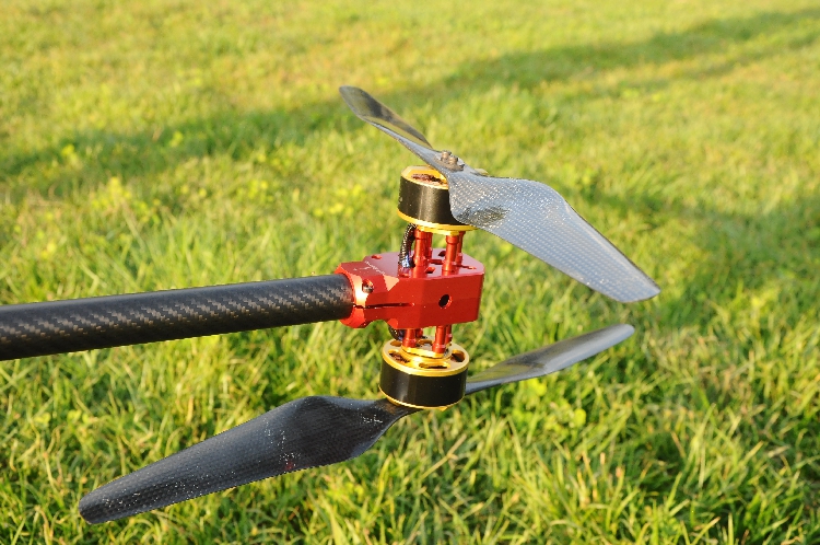 搭配豪宇最新设计的全金属多功能电机座,可以自由选择单向电机座或者共轴电机座,满足X4和X8布局!该电机座设计简洁,安装和校正非常方便,经CNC加工的铝合金材质结实耐用,表面经阳极氧化的红色也令整台飞机看起来漂亮不少!