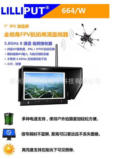 利利普 LILLIPUT 利利普664/W 7寸IPS 5.8G航拍FPV监视器 无信号显雪花屏