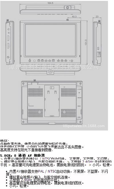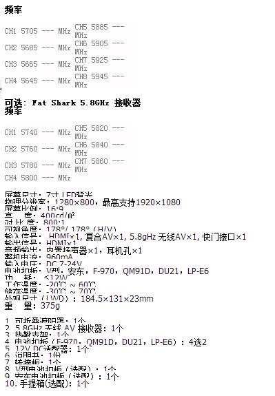 利利普 LILLIPUT 利利普 7”FPV双5.8G 31通道无线航拍监视器 329/DW