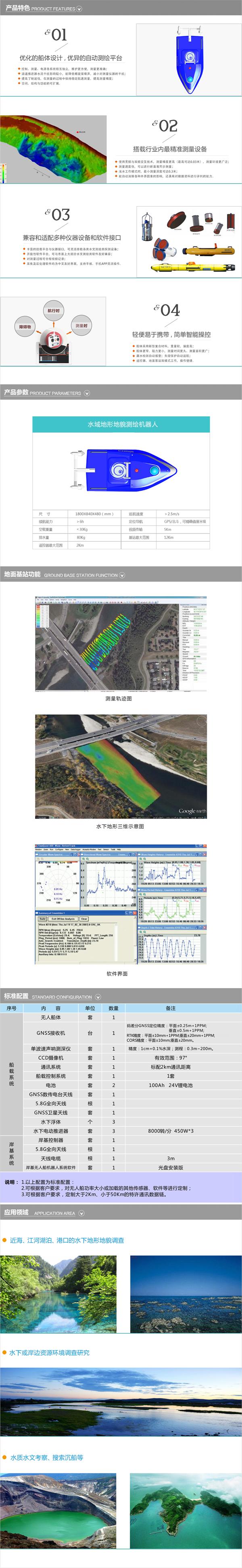 科微水域地形地貌测绘机器人,是以湖泊、河流、水库、海岸、港湾等水域为对象,基于水上机器人无人驾驶遥控船为载体,集成GNSS系统、声呐系统、惯性导航系统、ADCP、水下摄像机等高精度测量仪器,通过无线通信、自主导航及自动控制系统,实现水域地形地貌信息的自动采集、处理和分析。