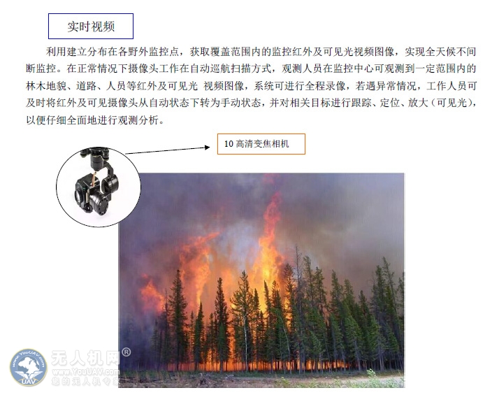 利用多倍变焦高清摄像头可以从全局上掌握现场火势,局部着重监控,以便地面工作人员及时正确的指定相关策略。