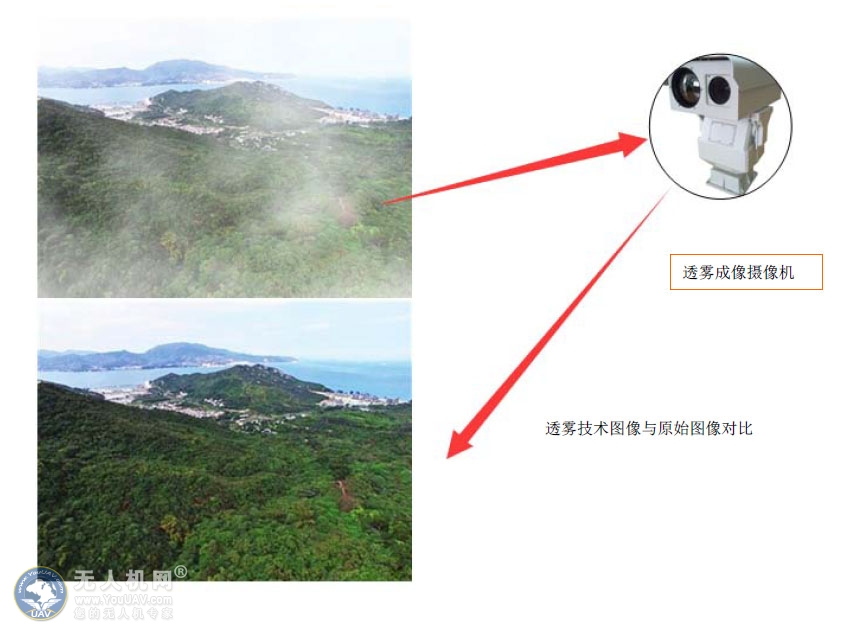 由于是森林火灾必不可少的烟雾浓重,再加上平时山林经常浓雾弥漫,普通的镜头无法达到正常的监控效果,采用透雾成像技术,使用透雾镜头解决了火灾烟雾、山林烟雾浓重、成像难的问题。