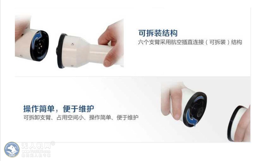 所有支臂均无需借助任何工具就可以快速拆装,只要拧紧支臂固定环,调试好系统就可以进入作业状态。大大缩短准备时间,任务结束后,体积最小化,方便携带运输。