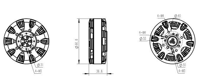 | 44.4V | TM30*10.5CF | 50% | 4.3 | 190.92 | 2600 | 13.62 | 44.4V电压下,用TM30*10.5CF桨75%油门运行10min,测试温度为78℃ |