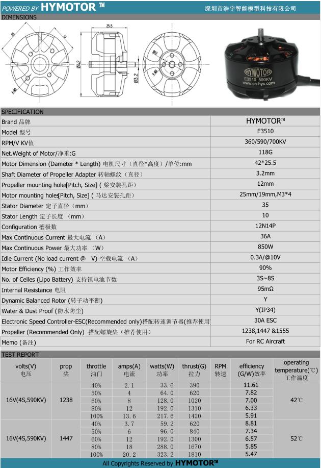 HYMOTOR E2204(ESC) 2300KV无刷电机 可定制