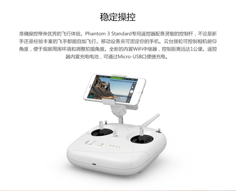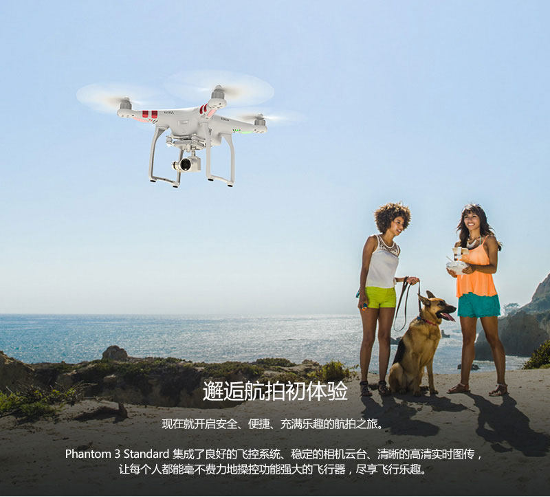 "大疆精灵3标准版继承了“精灵”系列几款前作的高度稳定性、卓越飞行体验以及航拍画质,令航拍变得简单、便捷。在此基础上,其具备“智能飞行”功能、2.7K超高清机载相机以及平易近人的定价等亮点。" —— 腾讯数码 "大疆官方将Phantom 3 Standard定位在满足普通民众对航拍好奇心的新产品,大量的预设动作让Phantom 3 Standard使用起来更为简单,更何况售价更便宜,对无人机好奇的同学是时候掏出钱包了。" —— 爱活网