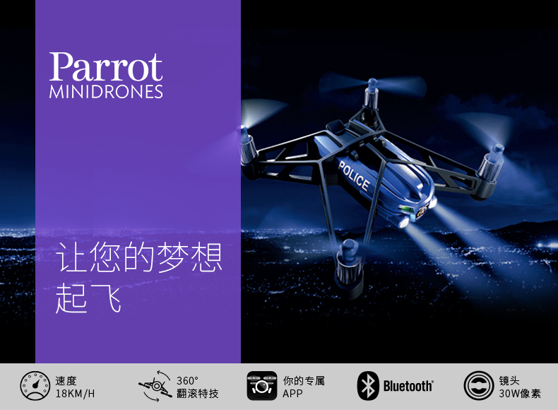 法国派诺特 Parrot airborne night 四轴无人机飞行器 遥控飞机