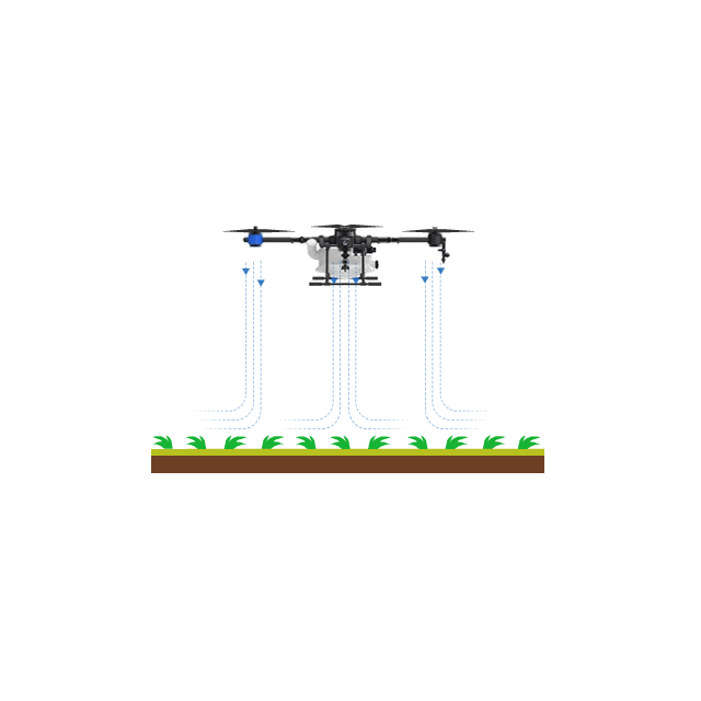 采用大扭矩动力电机和30英寸碳纤维螺旋桨,不仅为机体提供了强劲动力,还可产生强大的下压风场,作用于桨叶正下方的3个高压喷头,使药雾喷洒穿透性更强,减少药液漂移,起到深透喷洒,均匀覆盖的效果,节水省药,使农林植保作业更加经济环保。