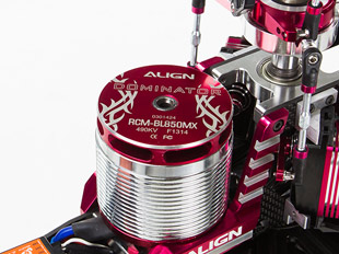 动力选用最高规格,经国际赛事肯定的世界冠军马达-ALIGN 850MX(490KV/4535), 具备高扭力、高转速、高效率的优点,加上马达散热片设计巧思,除了强化机身结构外,并提供马达散热功能,平均可降低达20°C的效果,此外造型外观前卫,加入红色阳极处理,更能显现出直升机的高质感 。搭载RCE-BL130A电子调速器,优异定速功能,最强动力完全给足。全新高压无刷DS820M/DS825M伺服器,采用超高效率的无刷马达,具备超高扭力与超快速度反应,让直升机动作更快、更确实,全金属CNC切削的优美精致散热外壳,突显出顶级伺服器的高质感。