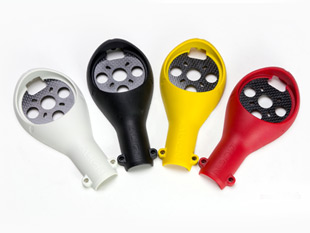 碳纤维埋射高强度工业塑胶一体成型的马达座,造型流线具备高强度、轻量化与吸震优点。马达座内置40A高速电子变速器,可切换马达转向,具备高亮度LED方便飞行辨识,灯号颜色(红灯/白灯)可随需求切换,与低电压警示功能。