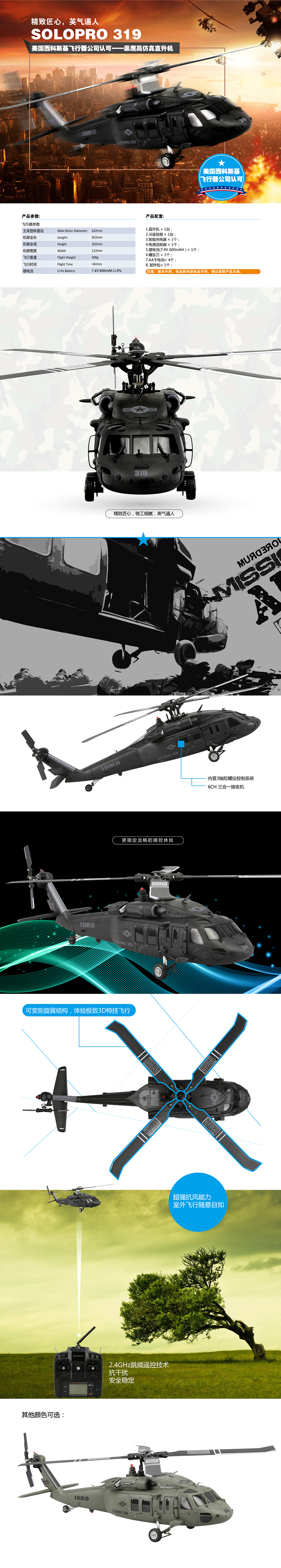MOLA模拉 Solo Pro319六通道2.4GHz单旋翼直升机专业飞行器