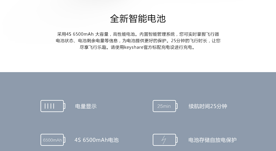 Keyshare基石无人机电池GLINT2飞行器专用电池 4S 6500mAh智能电池