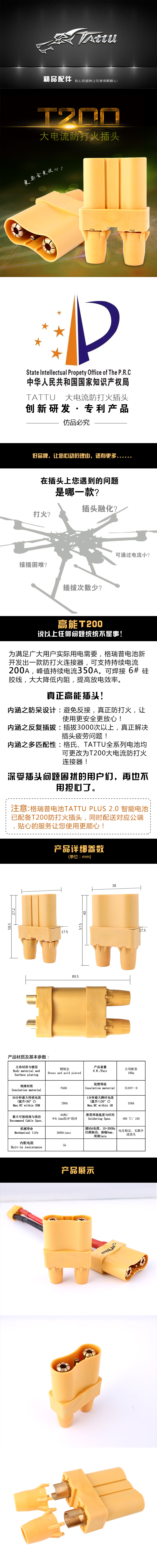 200A,最大持续电流350A。可焊接6#硅胶线,大大降低内阻,提高放电效率。