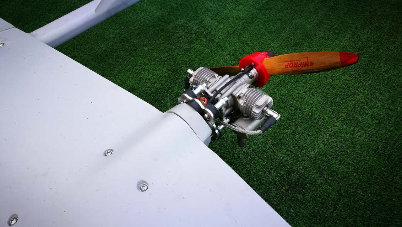 - 全复合材料,碳纤维/蜂窝芯结构 -21cc电油发动机,全电机垂直起降 -工业标准结构 -独立电池电源垂直起降, 实現最大限度的安全目标 -与PC地面站兼容,适合开源的自动驾驶仪系统 -易于在现场组装,不需要专业人员操作 -垂直升降,适合任何场地
