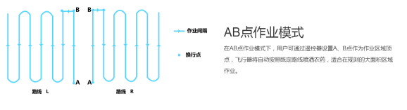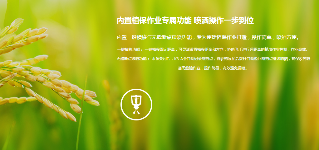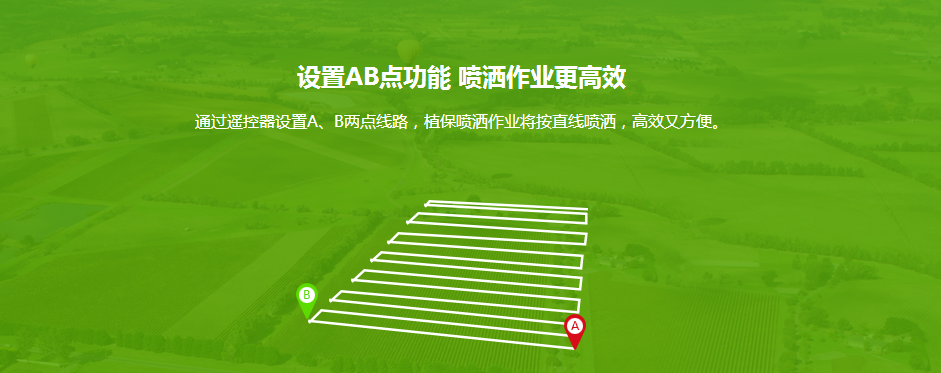 检测到二级电量警报、药量低警报、失去地面控制信号、一键返航信号后,将自主关闭水泵,并记下当前坐标点为续喷点。添加药剂后可一键返回续喷点继续作业,保证植保工作的连续性。