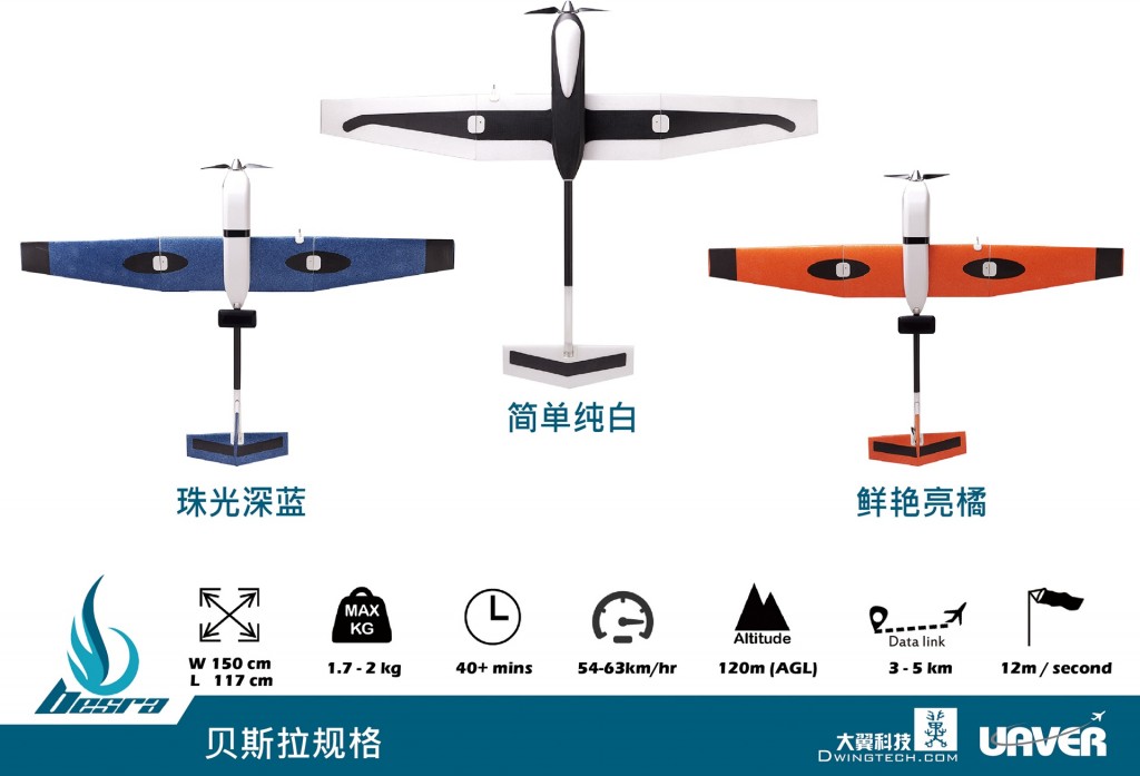 看得见未来,才知道现在。无人机行业应用市场有95%的客户需要更简单、更轻便、更可靠的无人机来生成2D正射影像和3D模型。高速公路、石油管路、高压电塔、河川沿线巡检;或是林务植栽、农业病虫害调查、泥石流、环保污染巡视;包括公安武警和城市管理等应用需要高性价比的解决方案。Besra贝斯拉就是为此而生,近一小时飞行时间,专业的控制和高清晰影像等突破传统的技术,还可以按客户要求搭载多光谱、高光谱、近红外线、短波、长波等设备。