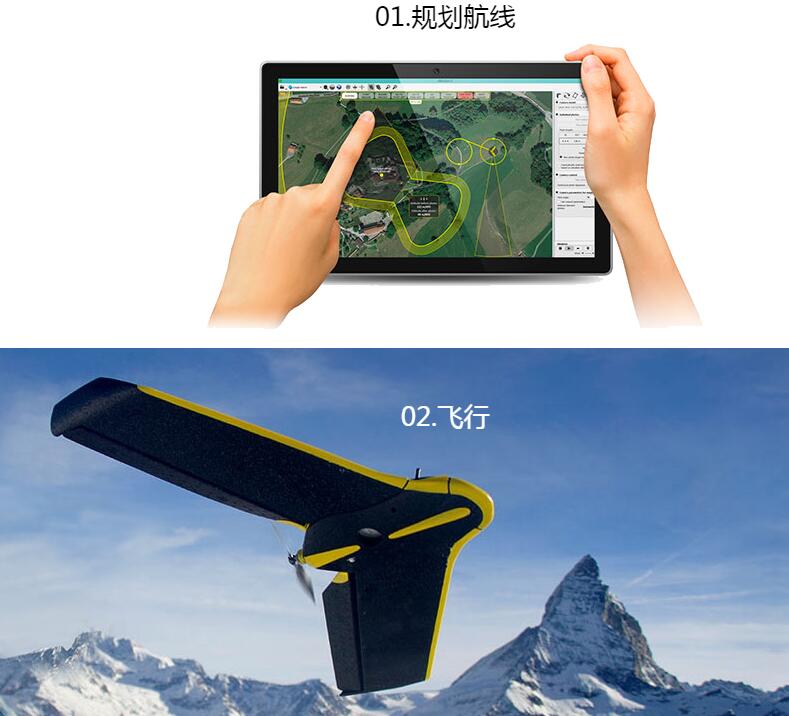 无需飞行技术 eBee是市场上最容易操作的迷你无人机。只需抛向空中即可起飞!然后它将自动飞行、拍照并降落(当然,如果需要,您可以自行设定航线或手动降落)。