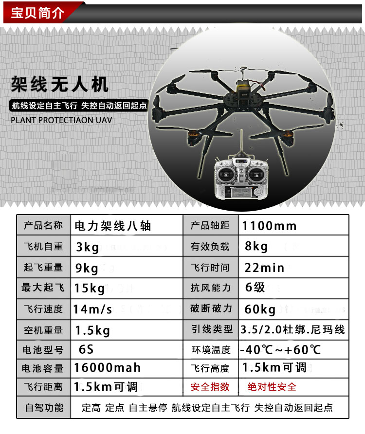 在电力架线领域发展较早,架线客户遍布全国各地国内电力架线队最多的是在四川广安一带,去年一年销完四川的用于电力架线无人机约30架,我们提供从你从未接触到包教包会 整套解决方案。