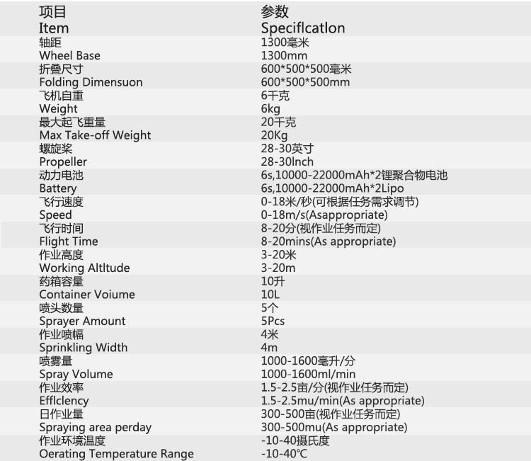多轴植保无人机飞行速度5m/s,续航时间15分钟,每分钟作业面积1-2亩,每组电池充电时间30分钟,每组*行器一天作业面积300-400亩,适应北方的干燥气候和南方的潮湿气候。