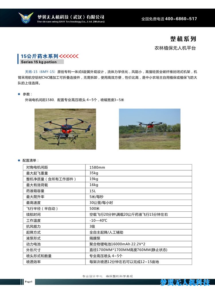 梦翼喷药无人机Zmy-15 直升机载重15公斤