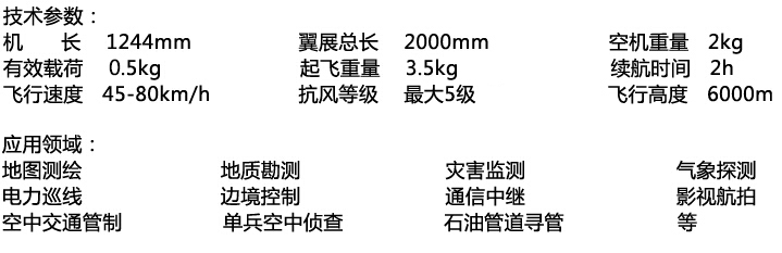 7.图像传输距离可达10-20公里,续航时间为2小时(视飞行环境而定)。