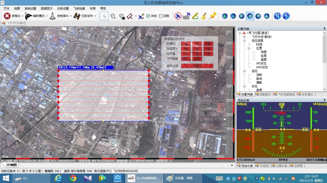 1.使用地面站软件的测绘功能规划飞机的飞行任务,设置飞行高度、速度、航线等信息。