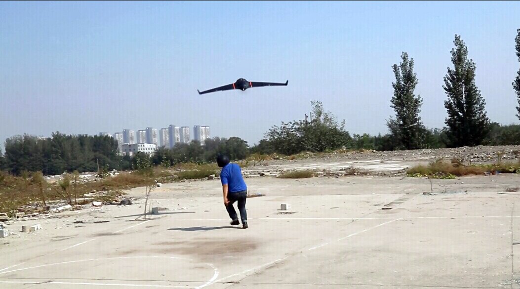 ZH-S1型手抛式无人机为后掠三角翼,动力装置后置,采用高密度泡沫作为主体,超轻碳纤维蒙皮,具有超高的强度。采用大容量锂聚合物电池为其提供动力,重量轻,动力足。采用手抛起飞、伞降着陆。具有起飞场地小,飞行稳定等特点。弥补了常规航测机场地难寻,无法拍摄小面积测区等缺陷。搭载先进的自动驾驶仪,数据采集精度高。