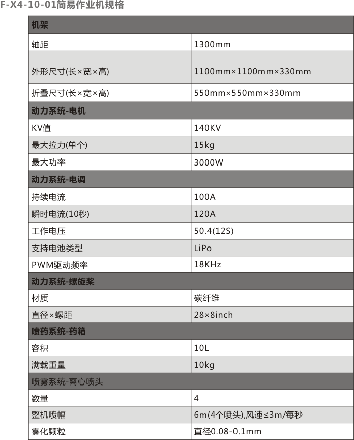 双捷科技 多旋翼10kg负载植保机F-X4-10-01