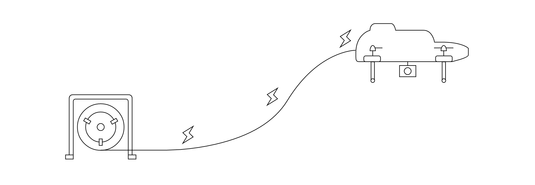 电缆供电系统不仅为无人机提供动力,而且还传输录像,并向无人机发送控制信号。在无线电信号中断的情况下,连接的电缆将允许安全操作。
