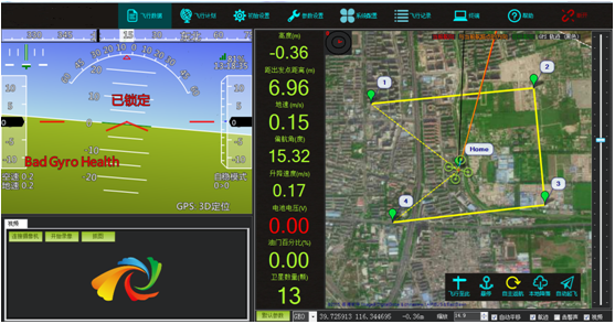 (3) 飞行计划:能够便利地制定飞行任务和计划,设定飞行航线,设定航线中每个航点需要完成的任务,能够根据飞行器的位置和定位情况设置初始位置,设定好的航点能够写入到飞控系统中。