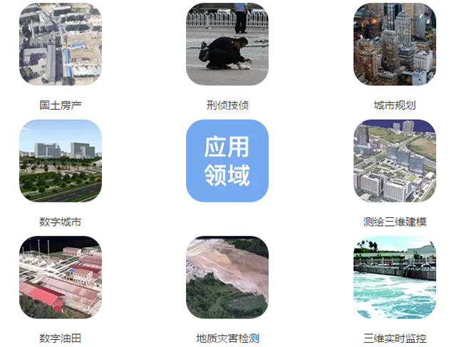 倾斜摄影技术颠覆了以往正射影像只能从垂直角度拍摄的局限,通过在同一飞行平台上搭载多台传感器,同时从一个垂直、四个倾斜等五个不同的角度采集影像,将用户引入符合人眼视觉的真实直观世界,并快速生产建立三维数字化模型。应用领域十分广泛,在国土房产、刑侦技侦、城市规划、数字城市、测绘三维建模、数字油田、地质灾害监测、三维实时监控等各个领域发挥了它的价值。