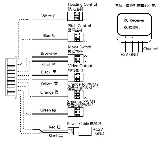 俯仰和横滚锁定,航向随机头方向平滑转动,俯仰通过遥控器控制